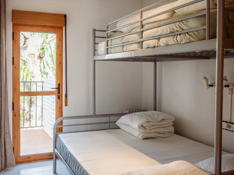 De tweede verdieping van het huis is volledig ingericht voor een comfortabel en ontspannen verblijf. Er zijn drie sfeervolle slaapkamers: een kinderkamer met een eenpersoonsbed en uitschuifbed, perfect voor de kleintjes, met een ruime inbouwkast. De master bedroom heeft een royaal tweepersoonsbed, een flatscreen-tv, inbouwkast en directe toegang tot het balkon. De derde slaapkamer biedt een praktisch stapelbed met een twijfelaar onder en een eenpersoonsbed boven, eveneens met balkon en kastruimte. Op de overloop zorgt airconditioning voor aangename verkoeling, en de nette badkamer is voorzien van een bad/douchecombinatie en toilet. Voor gezinnen met jonge kinderen zijn er handige extra’s beschikbaar zoals een babybedje, box en kinderwagen.